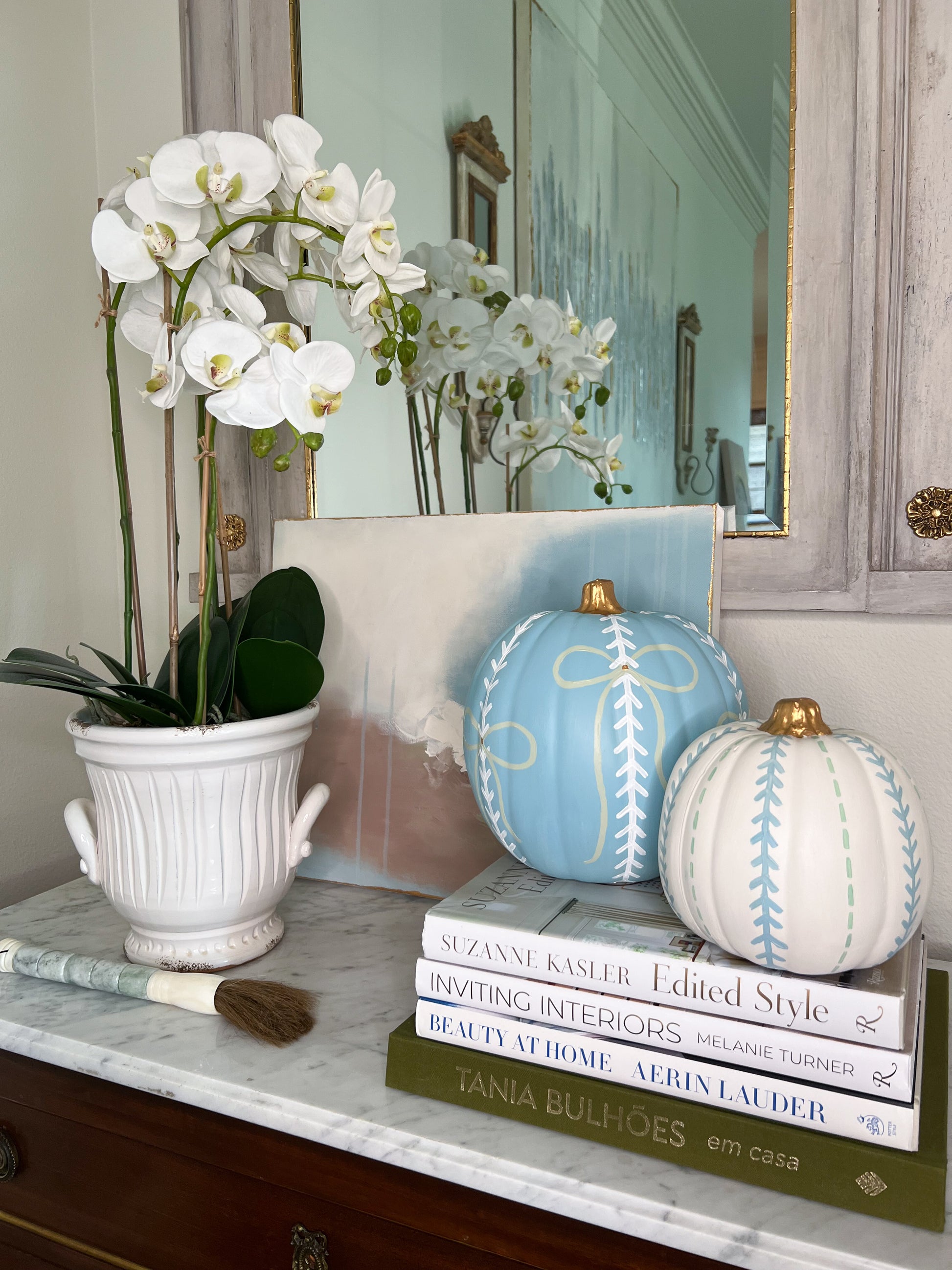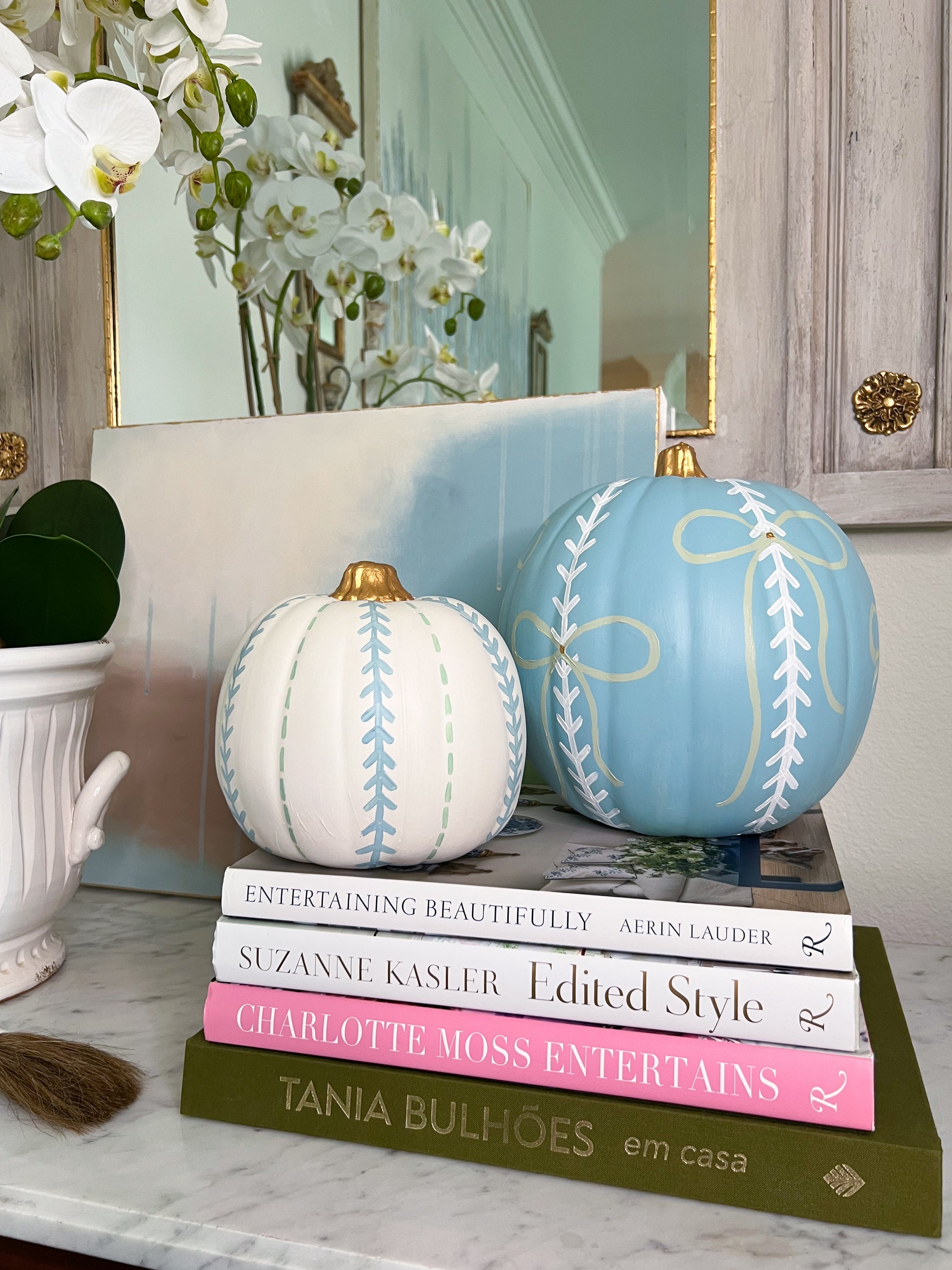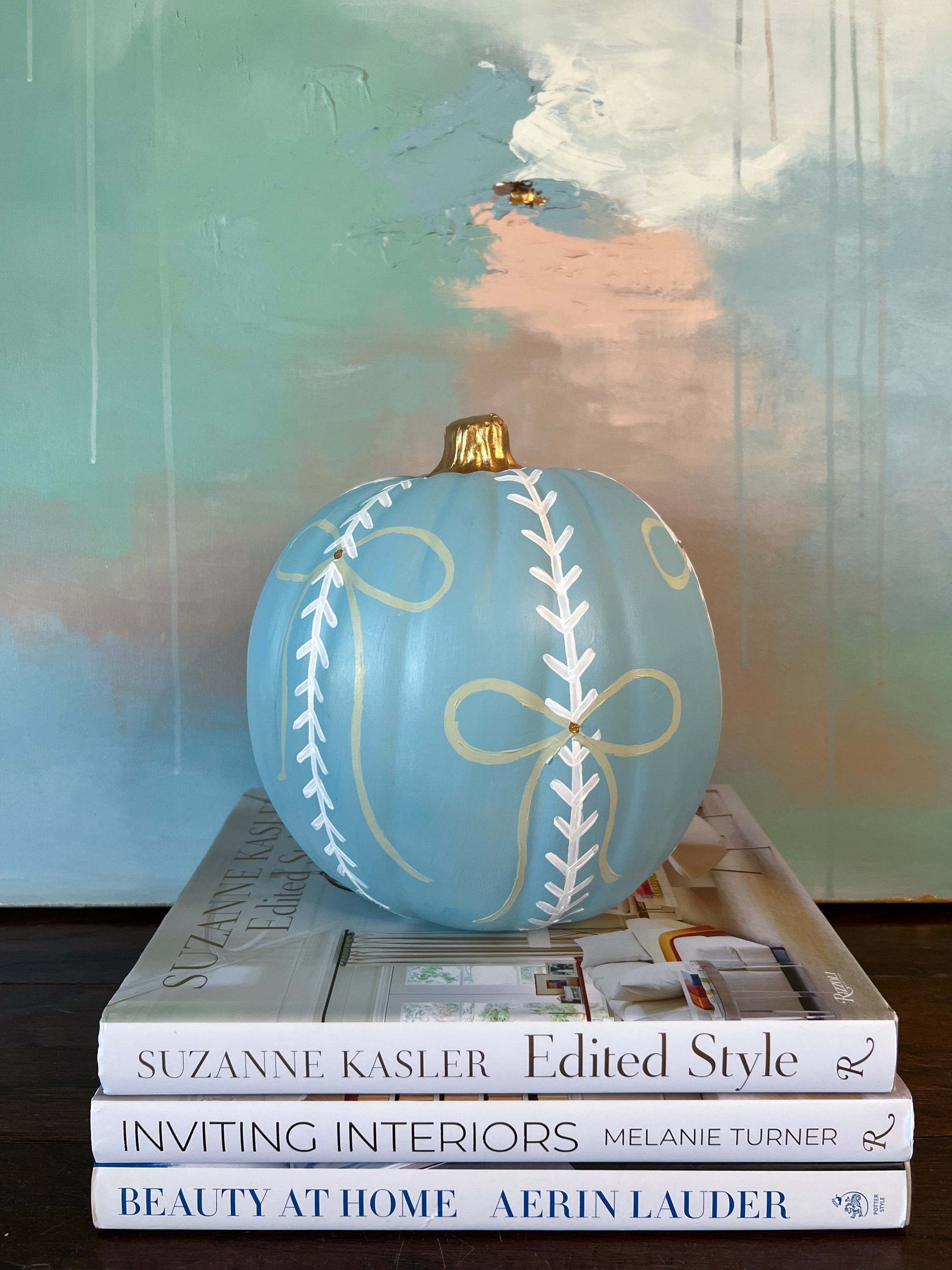 Hand-painted faux pumpkins inspired by my Fall Collection of paintings.